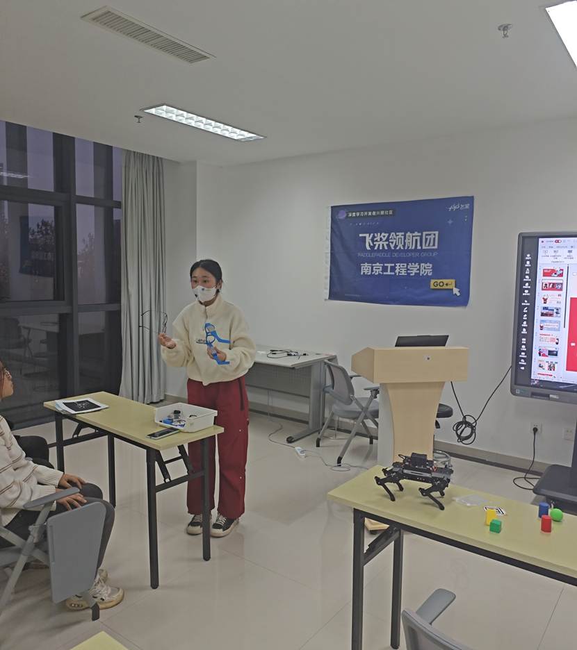 2025年10月28日,百度飞桨南京赋能中心一行走进天印湖科创学院,听取我院“飞桨领航团”学生团队关于 K12少儿人工智能通识公益讲座的科创作品展示与课堂授课汇报。展示作品涵盖 机器狗、AI眼镜、机械手、机器鱼 等多个人工智能项目,充分呈现了学生在软硬件融合、模型应用与课堂转化方面的实践能力。百度K12专家教师现场与同学们就 教学设计、课堂组织、演示节奏、互动反馈 等授课技巧展开深入交流,并对项目的可复制性与示范推广价值给予肯定。