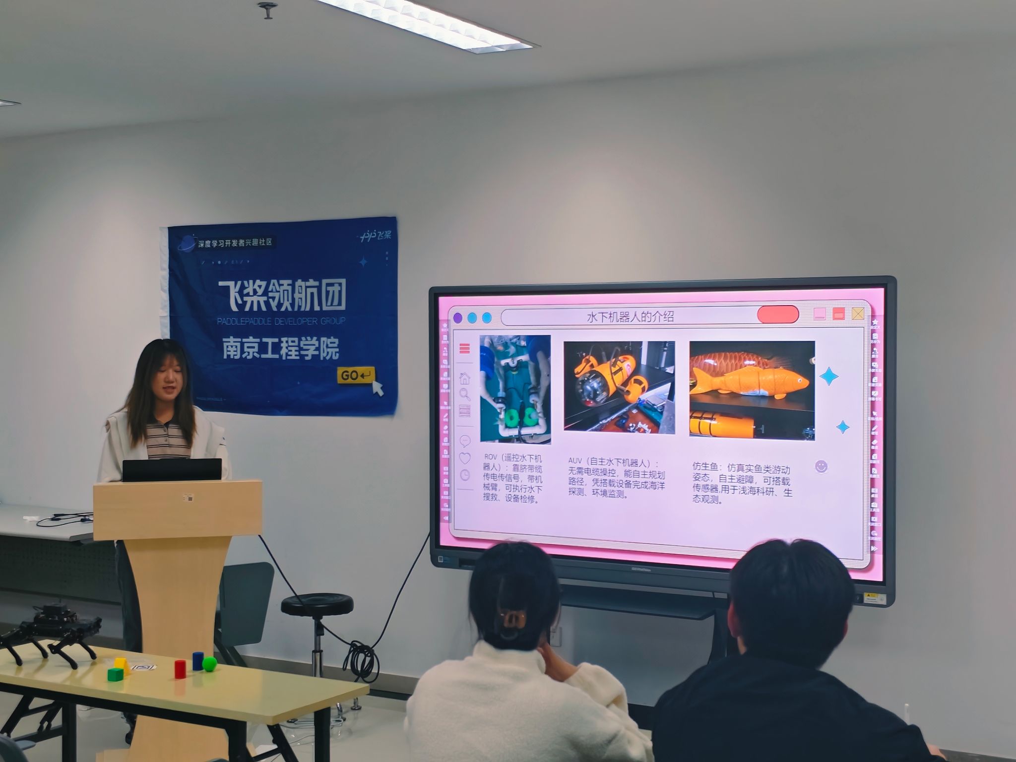活动现场,飞桨领航团围绕“从感知到决策”的AI核心链条,分模块介绍了传感采集、算法推理到执行控制的完整流程: