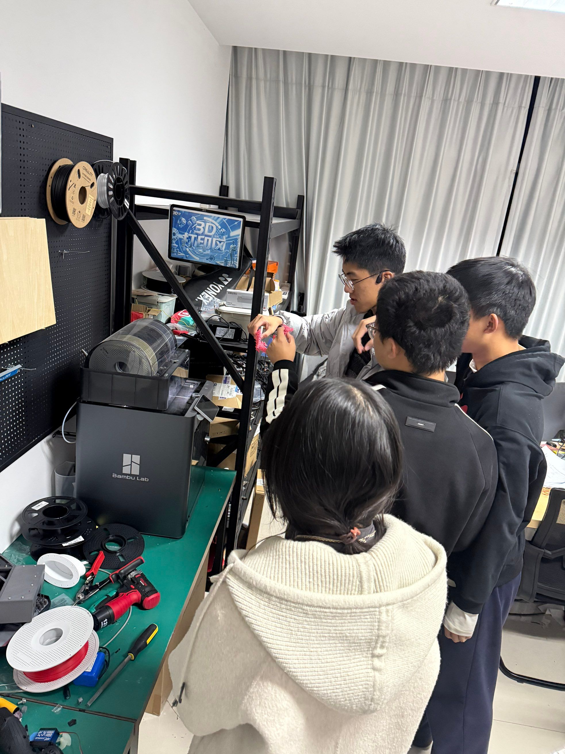 活动分为技术讲解与自主创作两个阶段。在技术指导环节,讲解同学系统阐释了3D打印的基本原理与安全操作规范,并现场演示了建模、调试、打印全过程。在实践创作阶段,同学们将情感表达与创新设计相结合,自主创作出兼具个性特色与情感温度的3D打印作品,包括创意钥匙扣、桌面摆件、寄语书签等多元形态。创作过程中,参与者不仅深入体验了数字化制造的完整流程,更在专注投入的设计实践中实现压力的有效释放。
