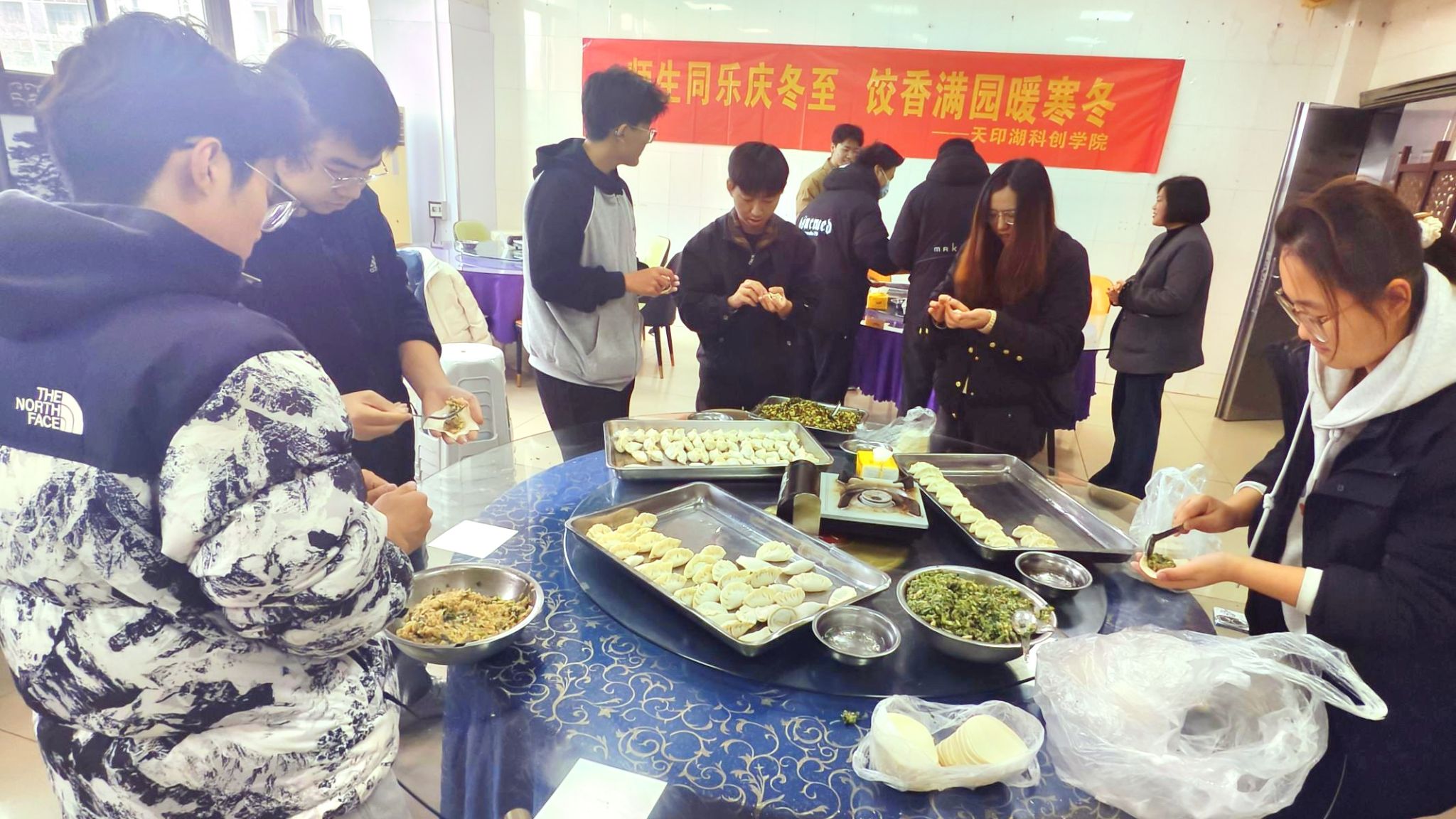 冬至吃饺子是中华民族的传统习俗,为弘扬中华优秀传统文化,丰富校园文化生活,增进师生情谊,12月19日,天印湖科创学院在润园二食堂举办“师生共聚,情暖冬至”主题活动。学院党政领导,全体师生欢聚一堂,共同体验包饺子、品饺子、话情谊的冬至温情时刻。