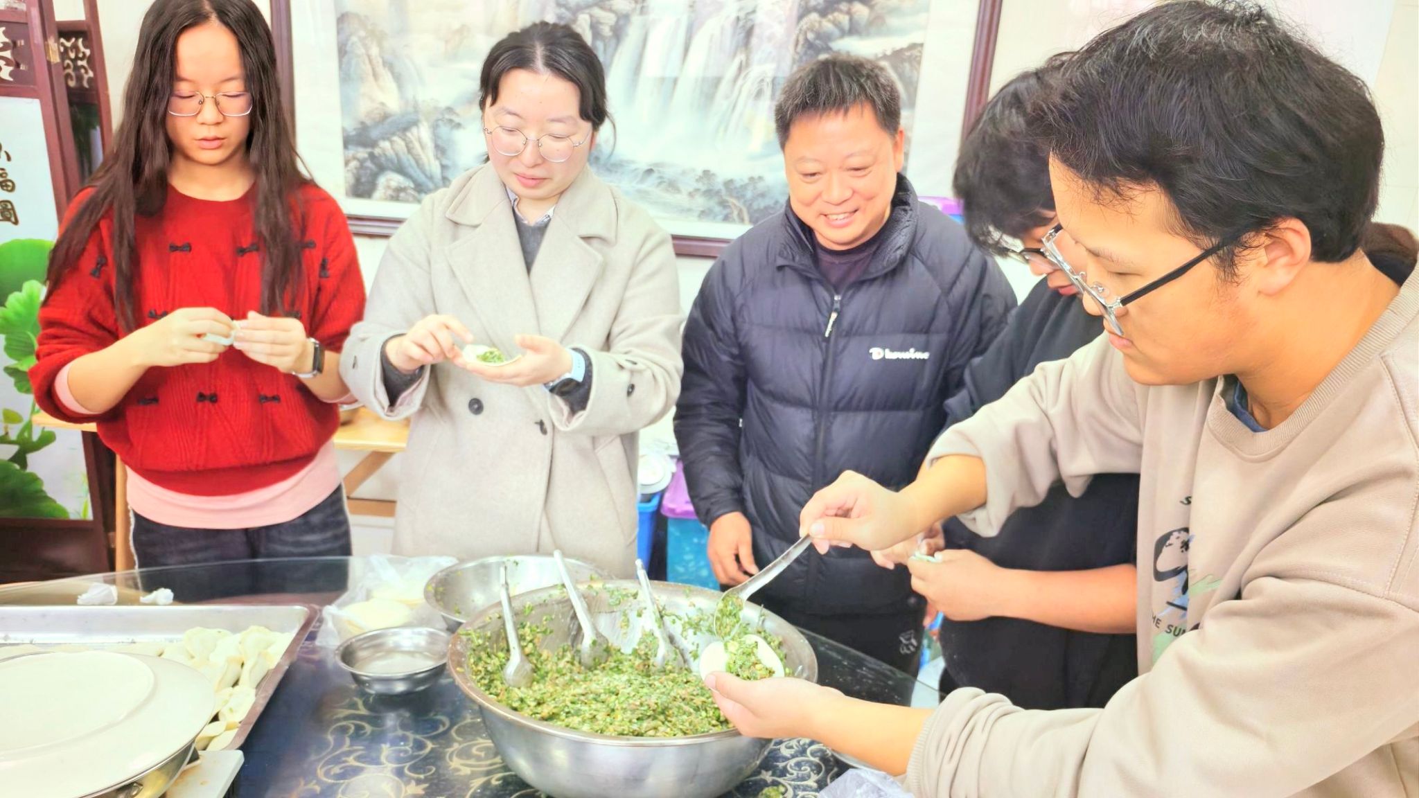 活动中,老师们一边和同学们包饺子,一边亲切地就学习、生活、科创等话题展开交谈,一阵阵欢声笑语从食堂传出,小小的饺子传递着深厚的情谊。在师生的共同努力下,一个个形状各异、满载心意的饺子摆满了桌面,一盘盘饺子也热气腾腾地出锅。师生们围坐在一起,品尝着自己亲手包的饺子,边吃边聊,现场气氛欢乐融洽。院长陈巍向学生们分享了冬至作为中华民族传统节日的意义,并希望同学们能够深刻领会传统文化精神,将传统文化精神内化于心、外化于行。