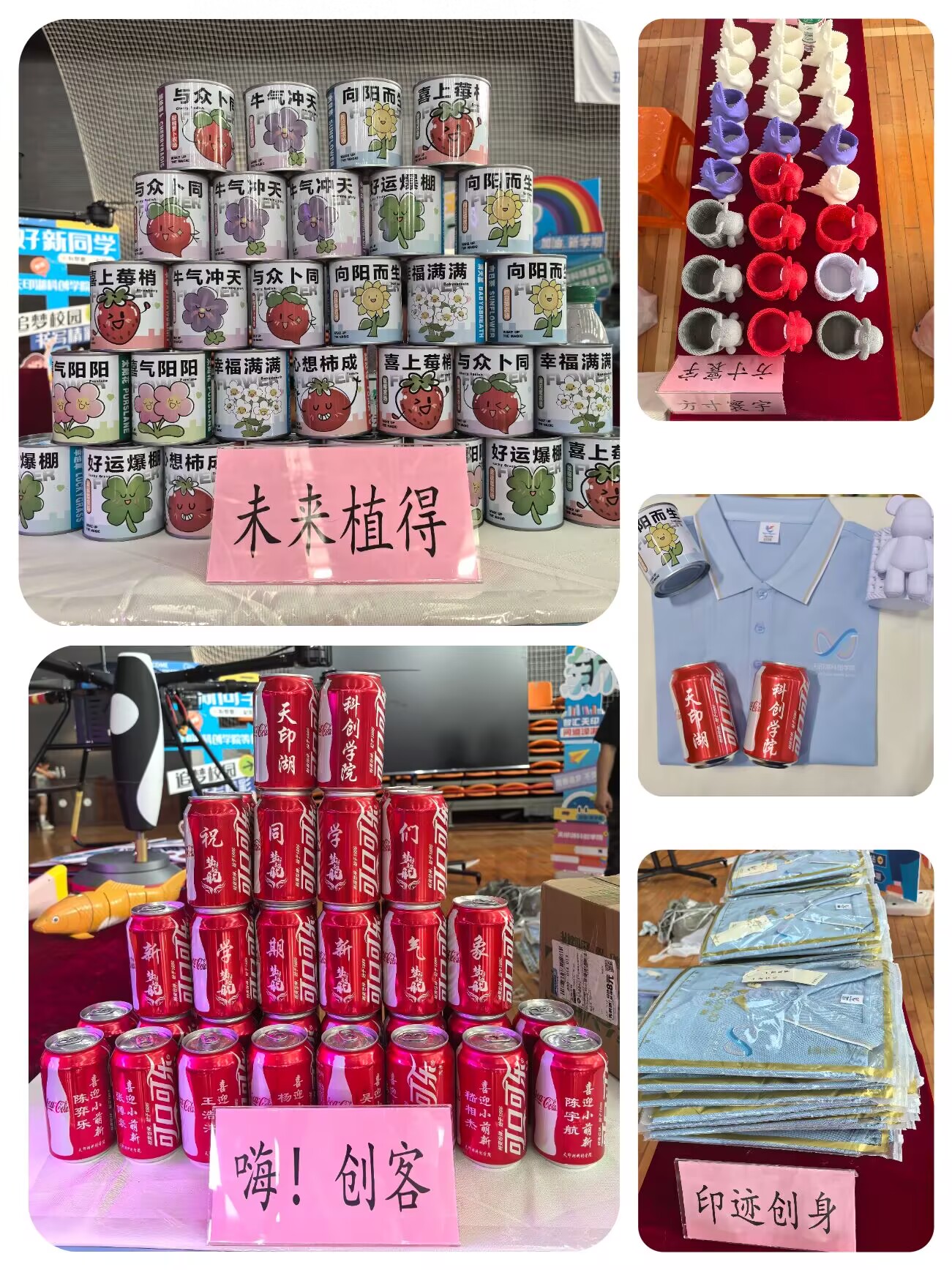 报到环节特别设置了“创客礼包”领取处。这份精心准备的礼物每件都寓意深远:【创仪初见】院服作为新生的第一套正式着装,象征着与科技创新事业的郑重相遇;【方寸寰宇】笔筒由学长们采用3D打印技术制作,刻有新生姓名,寓意方寸之间装载寰宇之志;【嗨!创客】可乐印有学生姓名,喻示为创新之路补充能量;【未来植得】绿植需要亲手种植,诠释“亲手种植,方得始终”的实践精神。这份独具匠心的礼物让抽象的“科创”理念变得可触可感。