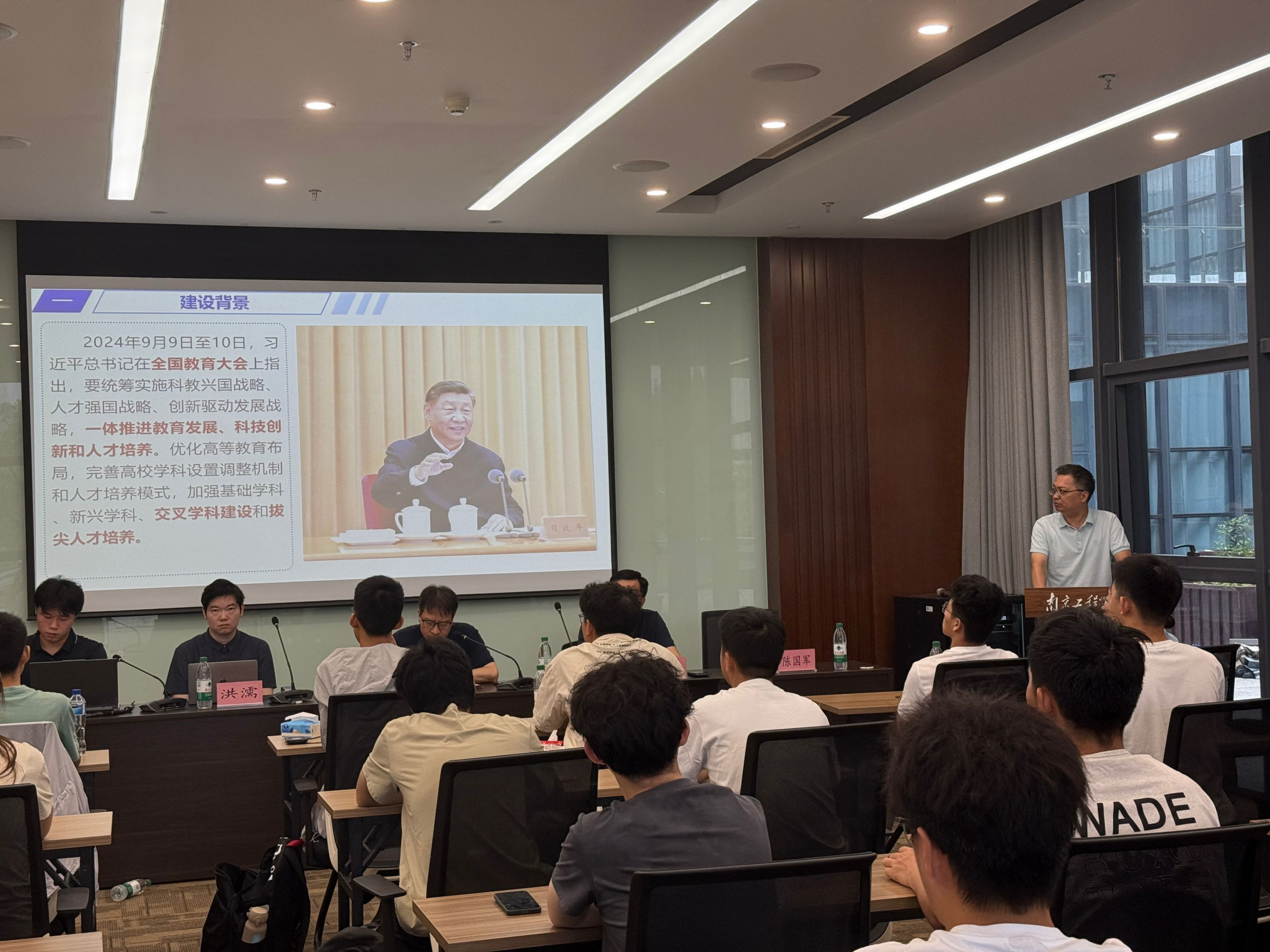 接着,AI+X复合系系主任陈国军,为新生进行了全方位的“培养体系解读:经纬纵横,育才之道”。他详细介绍了学院独具特色的人才培养体系、交叉融合的课程结构以及丰富的产学研平台资源,为初入大学的新生们清晰地勾勒出未来的学习地图与成长路径,帮助他们明确方向,自信启航。