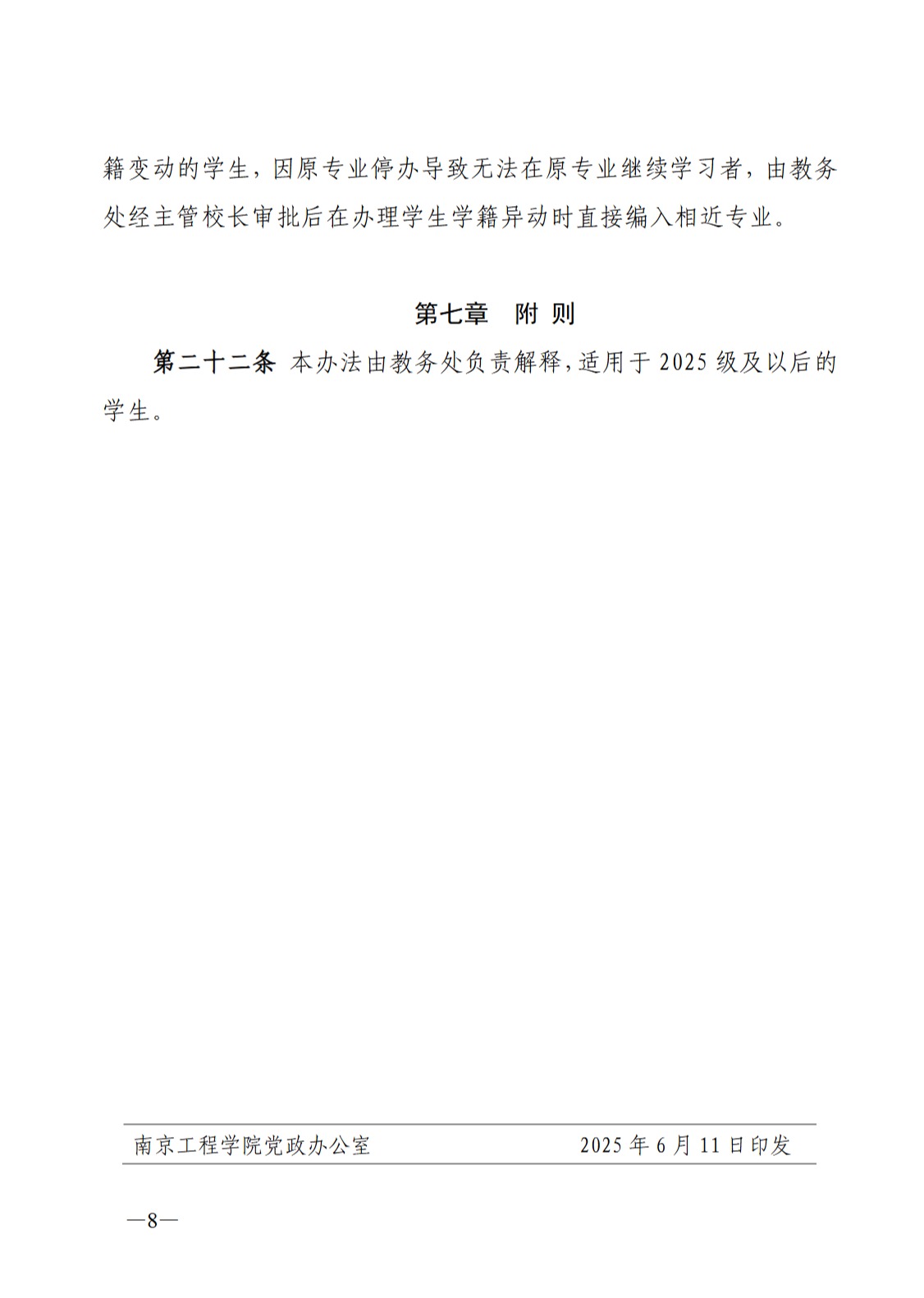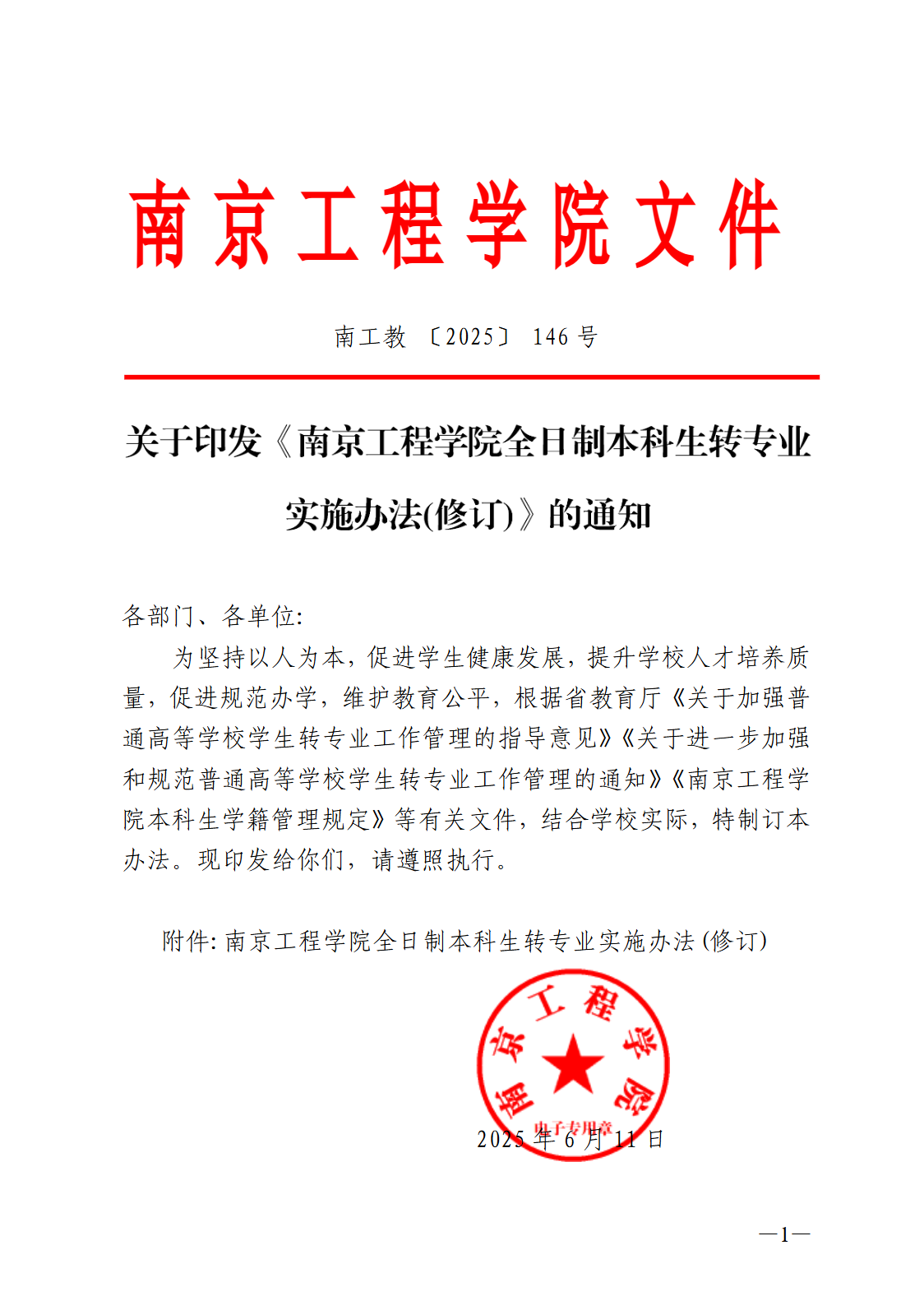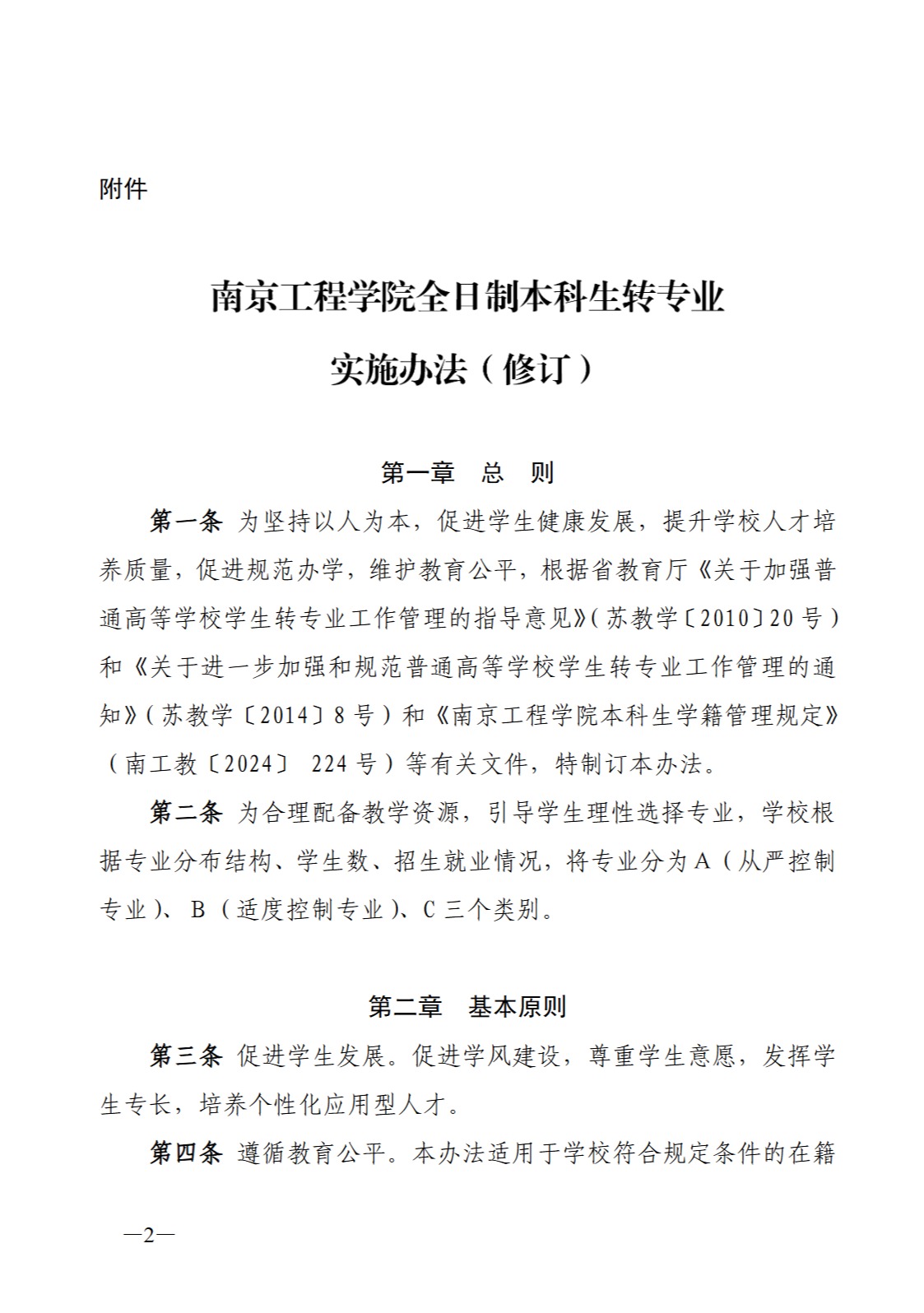 关于印发《南京工程学院全日制本科生转专业实施办法(修订)》的通知